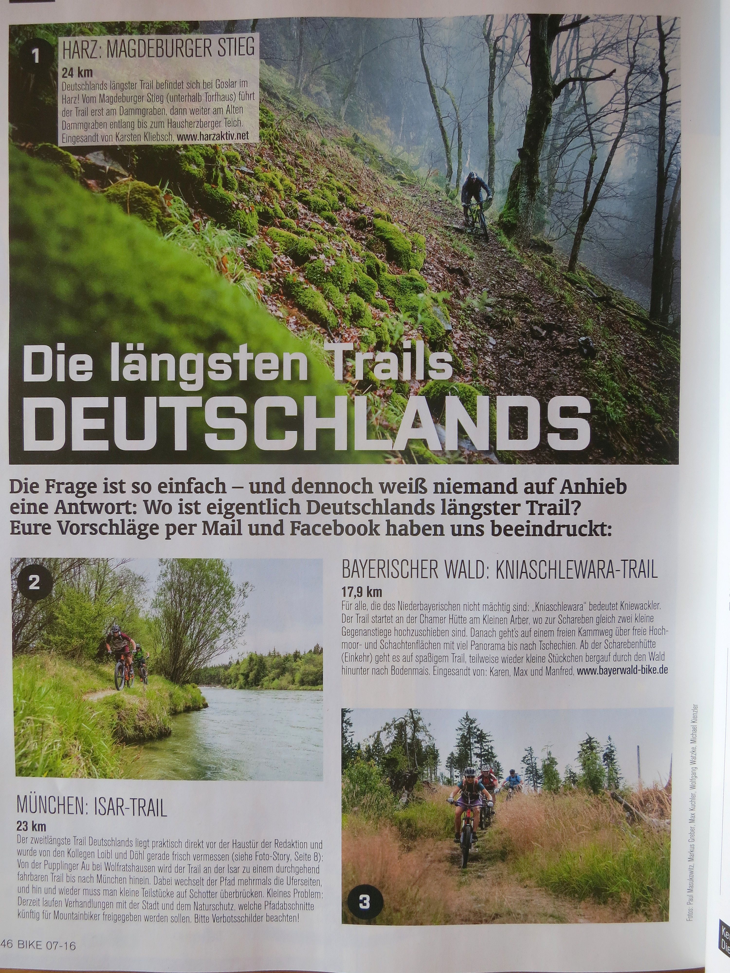 Bike-Magazin hat in seiner Juli-Ausgabe 2016 den längsten Trail